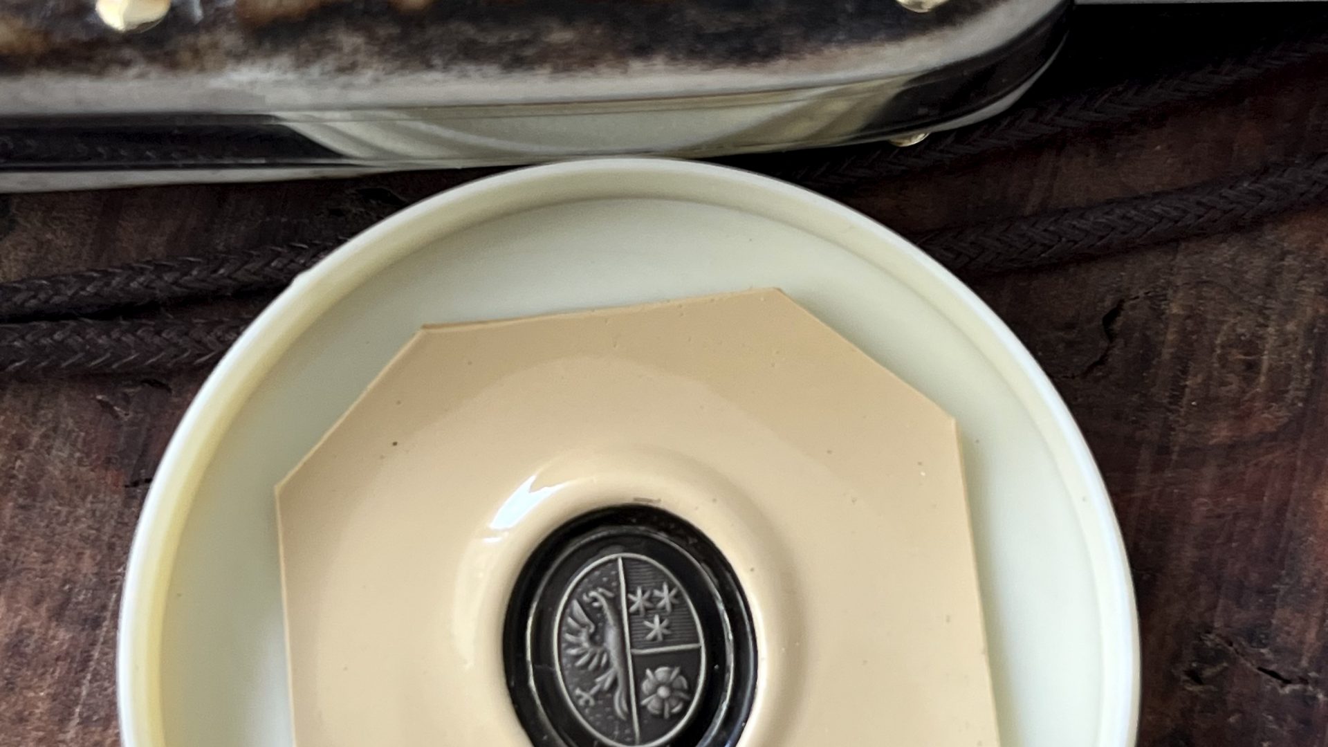 Fuchsrad Sowohl als Brosche wie auch als Hutnadel tragbar. Die Fuchsfänge und ein Welpenzahn sind in Sterlingsilber gefasst. Mittig verziert ein grüner Turmalin das Schmuckstück, sieben Diamanten verzieren die Blütendolde des Edelweiß.