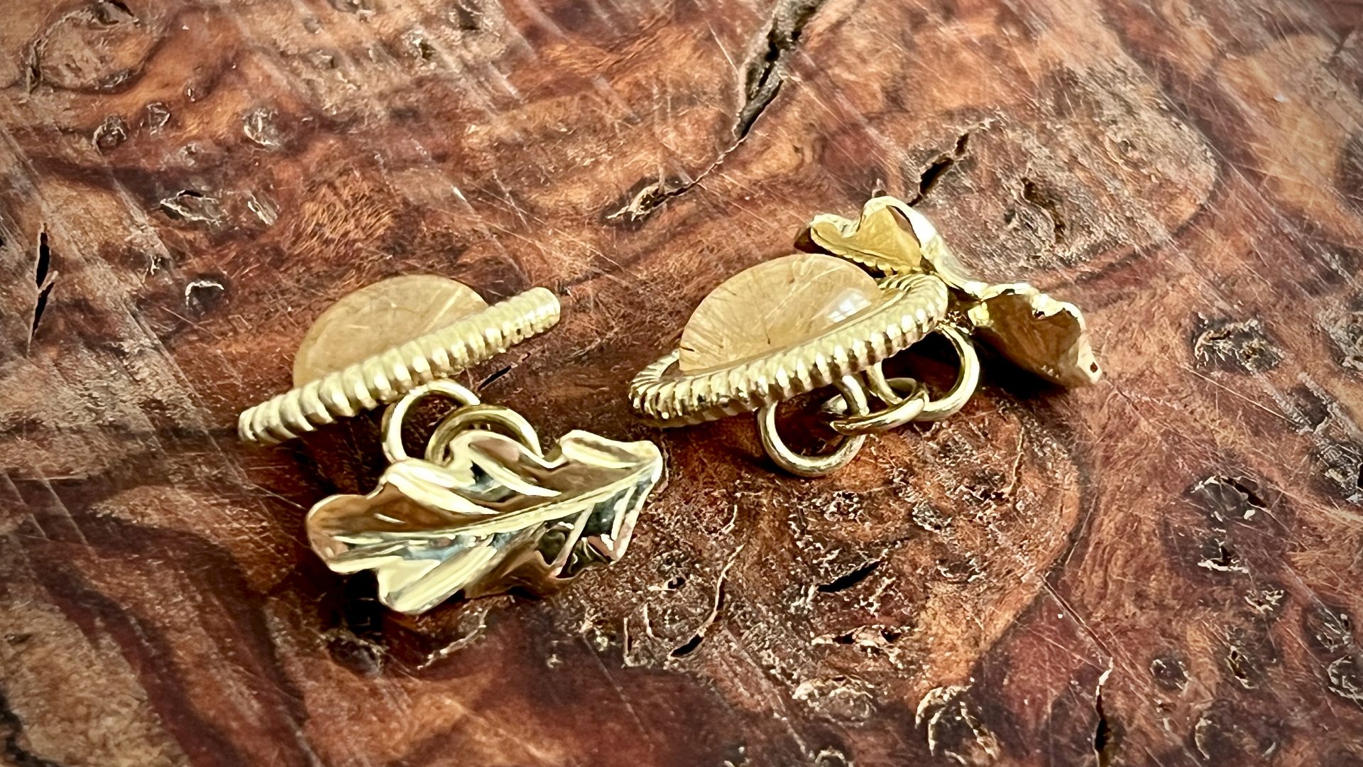 Manschettenknöpfe oval Die Manschettenknöpfe in ovaler Form können sowohl in Silber als auch in Gold gearbeitet werden. Der Gravurstein und das Motiv sind frei wählbar.
