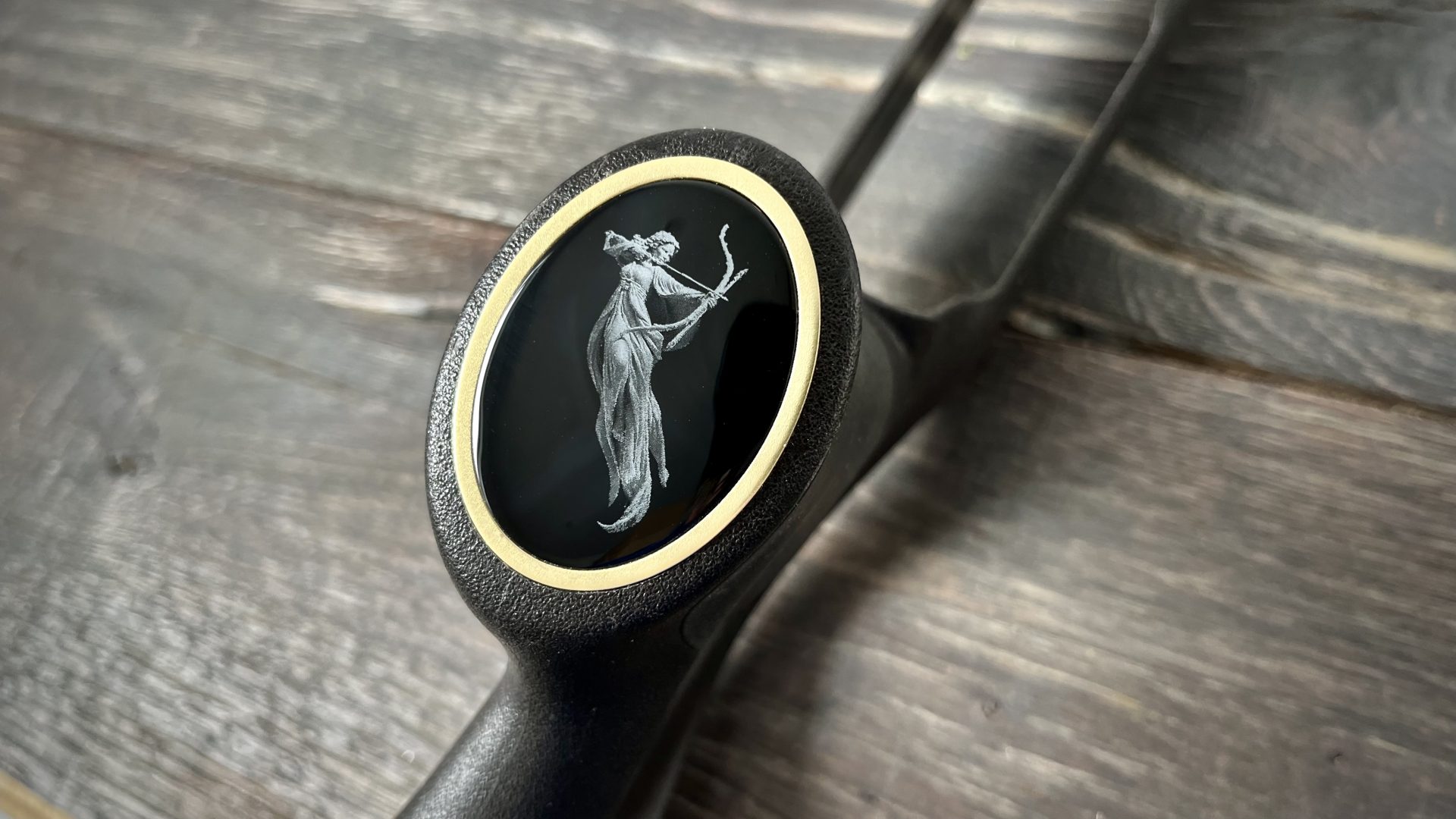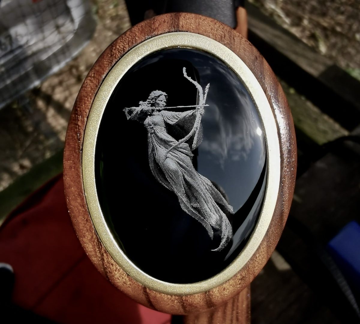 Pistolengriffkäppchen Porträt HS das Porträt des Hannoverschen Schweißhundes wurde nach Fotovorlage für die Blaser R8 Ultimate angefertigt. Es sind alle Motive umsetzbar.